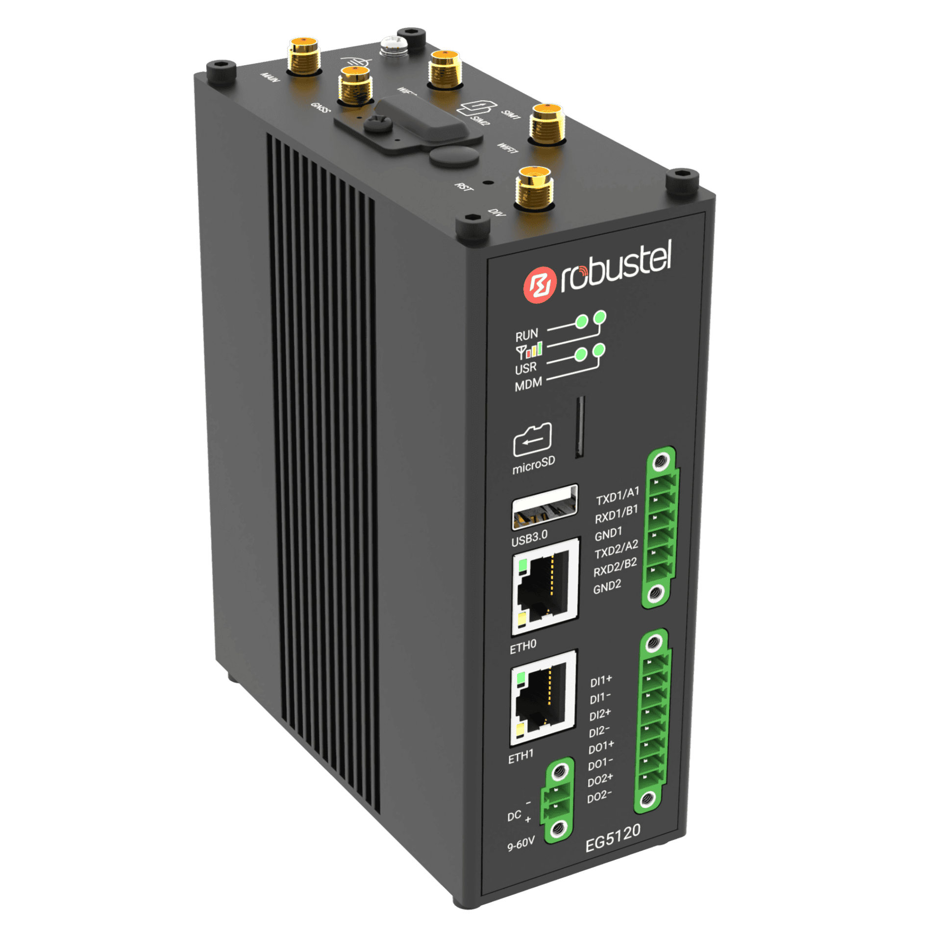 The Robustel EG5120 is a 5G-ready industrial edge gateway that combines secure cellular backhaul with on-device processing for real-time decisions at the edge. Built on RobustOS Pro (Debian 11), it supports Docker containers and Debian packages so you can deploy protocol bridges, data buffering, and ML workloads alongside your equipment. A quad-core 1.6 GHz Cortex-A53 with 16 GB eMMC and a 2.3 TOPS NPU accelerates inference for use cases like vision or anomaly detection.